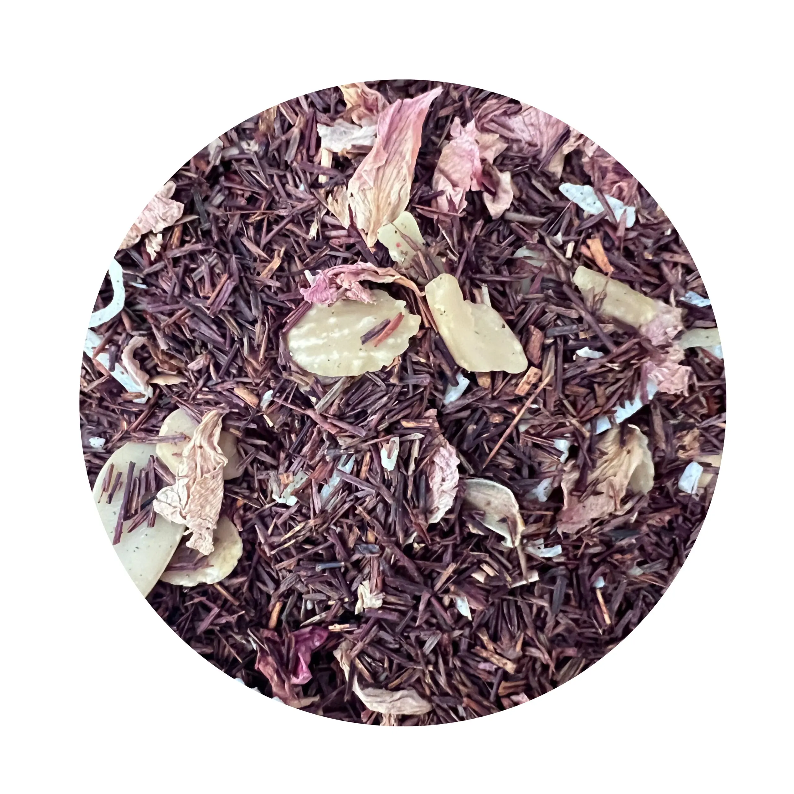 Rooibos, almendras, coco, petalos de rosa, vainilla